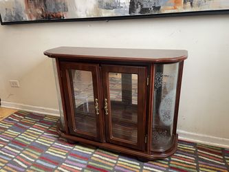 Cherry Finish Display Curved Curio Console-No Shelf$65Romeoville, IL