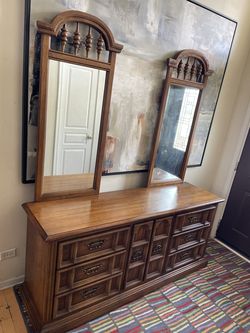 Vintage Broyhill Premier 9 Drawer 2 mirror Oak Dresser with wheels$275Romeoville, IL