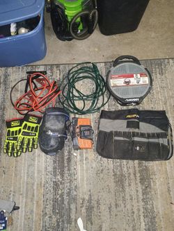 Bucket Organizers, Knee Pads, Gloves, Jumper Cables, Extension Cord And Ridgid Charger $30Denton, TX
