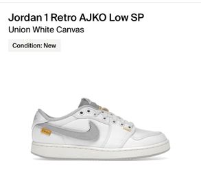 Jordan 1 AJKO Low Union White Canvas$190Chicago, IL