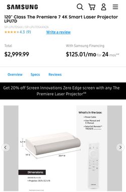 Proyector Samsung 4k $1,300Pompano Beach, FL