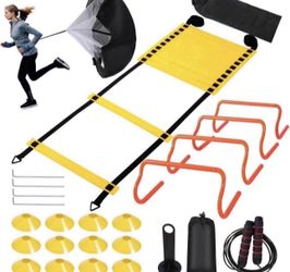 Agility Ladder Speed Training Equipment Set-20ft Agility Ladder,12 Soccer Cones,4 Hurdles, Jump Rope, Running Parachute| Basketball Football Soccer Tr$40El Monte, CA