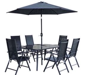 8-Piece Outdoor Patio Dining Set with Tilting Umbrella, Glass Table, & Folding Chairs$380El Monte, CA