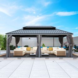 12' X 20' Hardtop Gazebo Outdoor Metal Gazebo Canopy with Galvanized Steel Double Roof, Aluminum Frame, Curtains and Netting for Patio, Deck, Garden, $1,200El Monte, CA