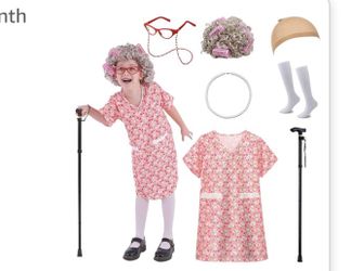 Girls 100 Days School Costume - Old Lady Wig, Dress & Accessories for Girls, Ages 3-10$15Moreno Valley, CA