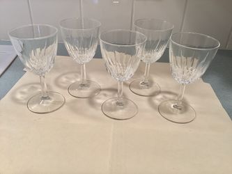 Vtg. Set of 5 Etched Wine / Water Clear Glasses 6” Tall BEAUTIFUL $8Garden City P, NY