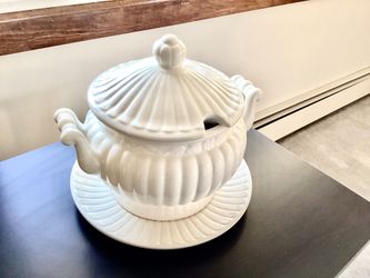 3 Pieces White Soup Sauce Stew Tureen + Lid + Under-plate 3 Quarts Porcelain Hinmark Kitchen Gourmet Preowned$15Garden City P, NY