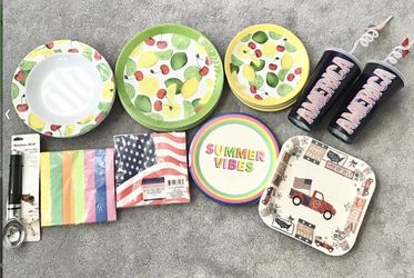 NEW Kitchen Aid Ice Cream Scoop + Outdoor Picnic Barbecue Dinnerware Napkins etc. Lemon Lime Motif$15Garden City P, NY