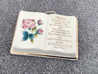 Vintage Ceramic Figurine Open Book Shaped Tribute To Mothers Thoughtful Words Mother’s Day Gift $5Garden City P, NY