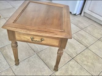 Vtg.1970s Broyhill Rustic Pecan End Table 22” Pullout Drawer Accent / Side Table$125Garden City P, NY