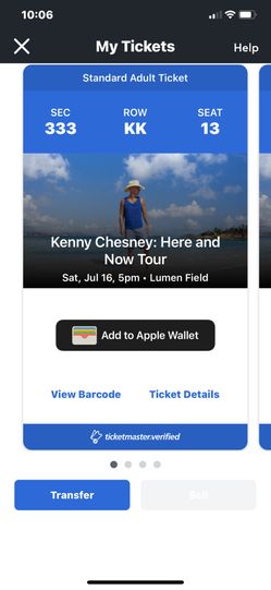 Kenny Chesney X4,150.00 For All$150Roy, WA