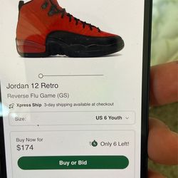 Jordan Retro Reverse Flu Game 12s$70Dundalk, MD