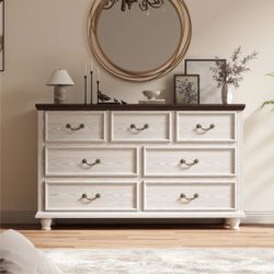Dresser For Bedroom With 7 Drawers, 54" Wide Modern Chest Of Drawers With Hidden Jewellery Drawer, Storage Dressers