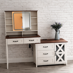 Afuhokles Vanity Desk with Large Lighted Mirror, Rustic Style Makeup Desk with Charging Station, Drawers, White$135Ontario, CA