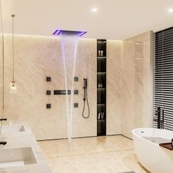 5 Spray 2.5 GPM Shower Faucet Thermostatic Shower System with 64 Color LED, Slide Bar, Digital Temp$350Ontario, CA