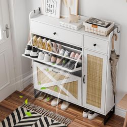 Shoe Cabinet with 2 FILP Cabinets, 2 Sliding Drawers, and 1 Side Cabinet, FreeStanding Shoe Storage Organizer Cabinet with Rattan Doors for Entryway, $75Ontario, CA