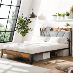 King Size Bed Frame, Storage Headboard with Charging Station and 2 Storage Drawers,Vintage Brown and Gray$130Ontario, CA