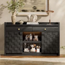 55" Sideboard Buffet Cabinet with Charging Station & LED Light, Coffee Bar Cabinet with Drawers, Pull-Out Shelf & Door Rack, Modern Storage Cabinet fo$120Ontario, CA