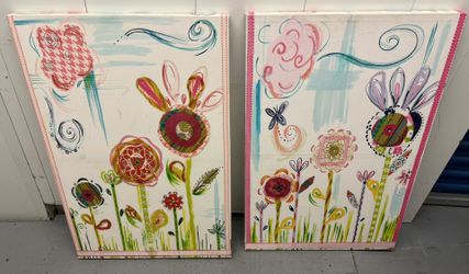 2 Liesl Painted Canvas Art Print Flower Wall Decor Wood Frame 3'x2'$15Md City, MD