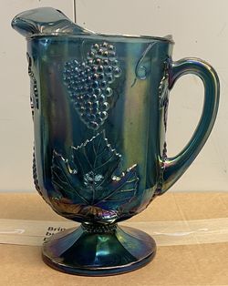Vintage Indiana Carnival Glass Iridescent Blue Harvest Grape 64oz Pitcher$10Laurel, MD