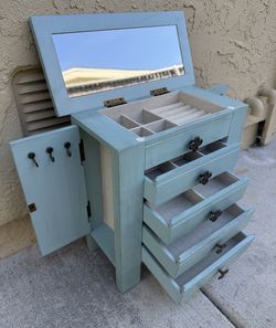 Turquoise Wooden Jewelry Box with Mirror & Storage$40San Diego, CA