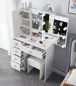 Vanity Desk with Mirror and Hidden Storage, White Makeup Vanity Table with Stool and 5 Storage Drawers for Bedroom$200San Ramon, CA