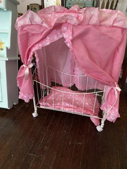 Doll bed Pink Fabric With White Metal Frame Cute! $20Fontana, CA