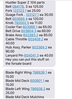Hustler Supe Z 104 parts$0Newport News, VA