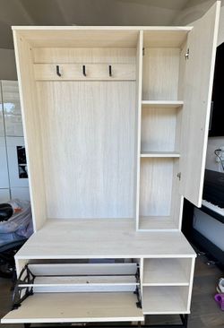 Hall tree ivory oak cabinet- Measurements: 69” height x 39.5” width x 19.5” depth$275Portland, OR