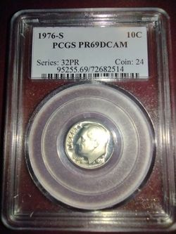 1976-S Deep Cameo Proof Roosevelt Dime PCGS Grade 69$21Hustonville, KY