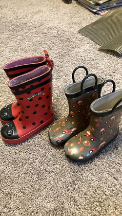 Two pairs of kids rain boots size 8 red and 7 gray$5Roswell, GA