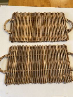 Bo Ho set of 2 rattan decor / serving trays with handles. 21 x 11 inches tall & 21 x 10. Farmhouse.$25Scottsdale, AZ