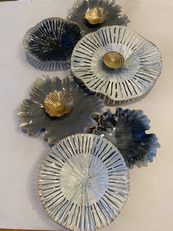 Metal gray/ blue / gold wall flower hanging. 26 x 14.5 inch. Modern / retro / Bo Ho .$40Scottsdale, AZ