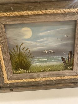 Vintage coastal beach oil painting on canvas, in rustic wood frame with rope accent. Rustic/ cottage$45Scottsdale, AZ