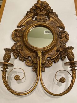 Vintage molded plastic frame mirror with metal & gilt wood candle holders. Rococo style Italian. MCM$125Scottsdale, AZ