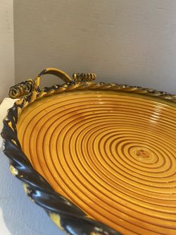 Large metal round decor tray with handles. Rustic orange & yellow. Cottage / vintage/ farmhouse.$40Scottsdale, AZ