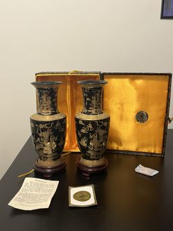 Vintage Chinese Porcelain Dragon Vases pair w/ silk box & wood stand$100Los Angeles, CA
