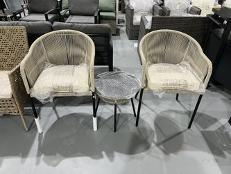 M-New Patio Furniture Set 3 Pieces Rope Woven Bistro Set Outdoor Conversation Set with 2 Wide Chairs,Cushions and Tempered Glass Table for Balcony Por$75Morrow, GA