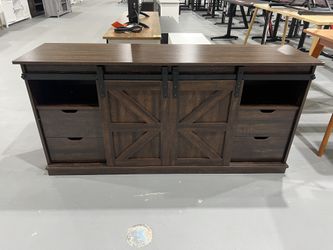M-(Minor damage)New Farmhouse TV Stand for Televisions up to 65 Inch, Wood Entertainment Center with Sliding Barn Doors and 4 Storage Drawers, 58’’ Me$100Morrow, GA