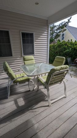 Aluminum 4-Person Glass Table With Green Cushions & Umbrella$198Lake Winola, PA