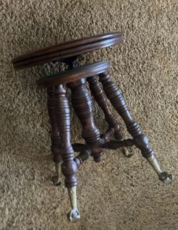 Antique Wooden Screw Adjustable Piano Stool Seat Eagle Claw Ball Footed Legs