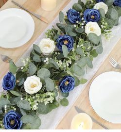 Artificial Eucalyptus Flower Garland with White and Blue Roses - 4 Pack$25West Palm Beach, FL