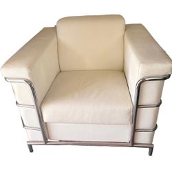 White Leather Sofa & Chair Set - Chrome Frame Modern Classic$777Huntington Beach, CA