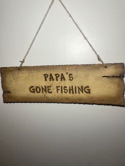 PAPA'S GONE FISHING Metal Sign Cutout 14 1/2 " x 4 1/2” ……..(#21)$21Chicago, IL