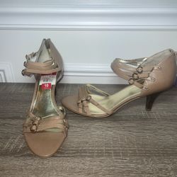 NINE WEST SPIRIT High Heels Ankle Strap Open Toe Sandals Beige Leather SIZE 10 M$45Chicago, IL