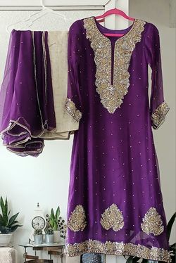 Pakistani Indian Woman's Pakistani 3 Piece Purple Chiffon Beautiful Embroidered Party Wear Please Sse Description $45Floral Park, NY