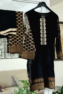 Pakistani Indian Woman's Pakistani 3 Piece Brand New Black Gold Embroidered .M / L . Dress Only $39$39Floral Park, NY
