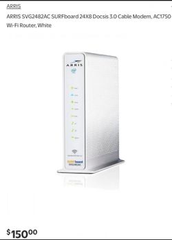 ARRIS SVG2482AC SURFboard 24X8 Docsis 3.0 Cable Modem, AC1750 Wi-Fi Router, White$60Westmont, IL