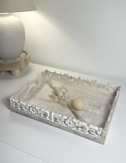Boho Handmade Decorative Serving Wooden Tray Whitewash 14" $35West Los Angeles, CA