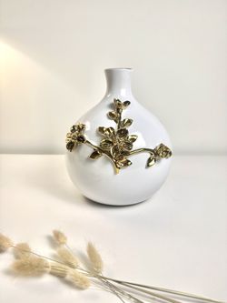 Contemporary Ceramic White Vase with Gold Flower 9" $39Veterans Adm, CA
